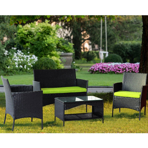 Great for small spaces or creating a cozy nook. This outdoor wicker furniture set comes with 1 loveseat, 2 single chairs to provide 4 seats, and a tempered glass top table. Each chair is ergonomically balanced.