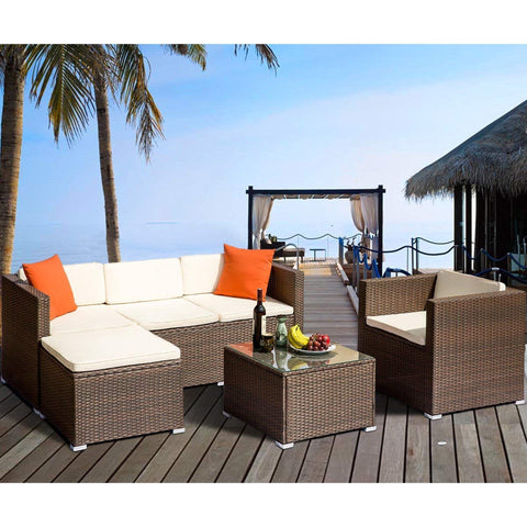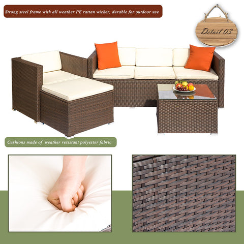 - Finish/Cushion Color:Brown rattan+Beige cushion+Orange pillow