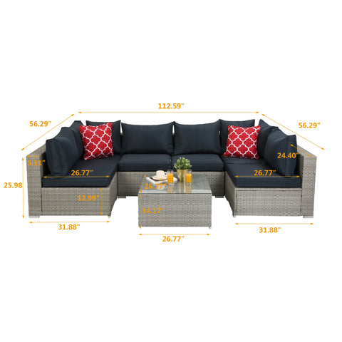 - [Modern & Luxury Style] - This 7-piece outdoor wicker patio sectional furniture set with high-quality thickened seat and back cushions, which takes you more extraordinary comfort. It is a great buy to enjoy your leisure time with your neighbor or friends whenever sitting or lying. The 7pcs outdoor wicker patio sectional furniture set is the perfect addition to your patio, garden, backyard, pool, or any other indoor/outdoor space.