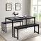 NEWEST 3 Piece Dining Table with bench set comes complete with a spacious table and 2 benches that will add a modern touch to your home. Beautiful, simple, smart, and stylish, the tabletop is made of environmental MDF board and the legs are made of heavy-duty powder-coated thick metal, which provides the most stability and durability, all parts coated with quality waterproof varnish for wear-resistance, anti-scratch, and easy to clean up.