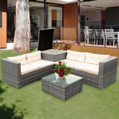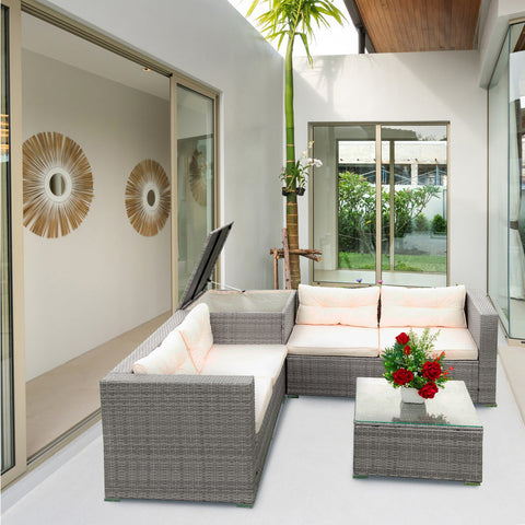SEGMART Patio furniture set features dark brown PE rattan with cream/grey cushions, which is perfect addition to your patio, garden, backyard, pool, other indoor and outdoor space. This modern outdoor sectional sofa comes with enough room to seat 4-6 friends comfortably with a Table to hold food and drinks.