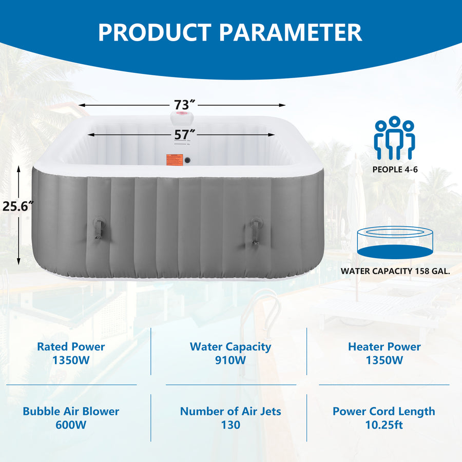 【Ideal for 4-6 Adults】Our 73 Inch hot tub accommodates 4-6 adults, letting you and yours fully enjoy your leisure time at home, on your patio, in the backyard, or elsewhere.