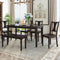 Elevate the warm look and feel of a dining nook or parlor with this chic, classic, elegant dinette set. Its compact size and sleek design blend effortlessly into rooms of all shapes, sizes, and decor styles. The classic glamour of its rectangular, solid wood table is enhanced by the versatile functionality of a space-saving feature. A classic espresso finish and sleek, graceful lines complete the glamorous look of this elegant 6 piece dining set. The upholstered dining chairs feature upholstered seat tops and curved back posts for added comfort. An upholstered dining bench adds a casual touch to this rustic dining set. Buy it!