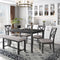 The rustic style dining room table set includes 1 wood rectangular table, 4 wood chairs with padded seat cushion, and 1 bench. Sturdy wood frame with gray finish, vintage furniture while incorporating modern flexibility design, you can create an elegant and warm interior dining nook with this 6-piece dining set.
